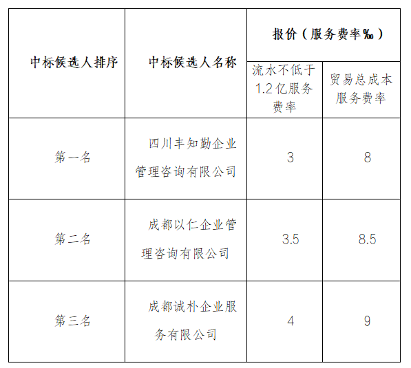 巴中俊佑工程項目管理有限公司融資咨詢服務(wù)采購項目詢價采購于2025年12月22日舉行,現(xiàn)將中標候選人名單公示如下:
